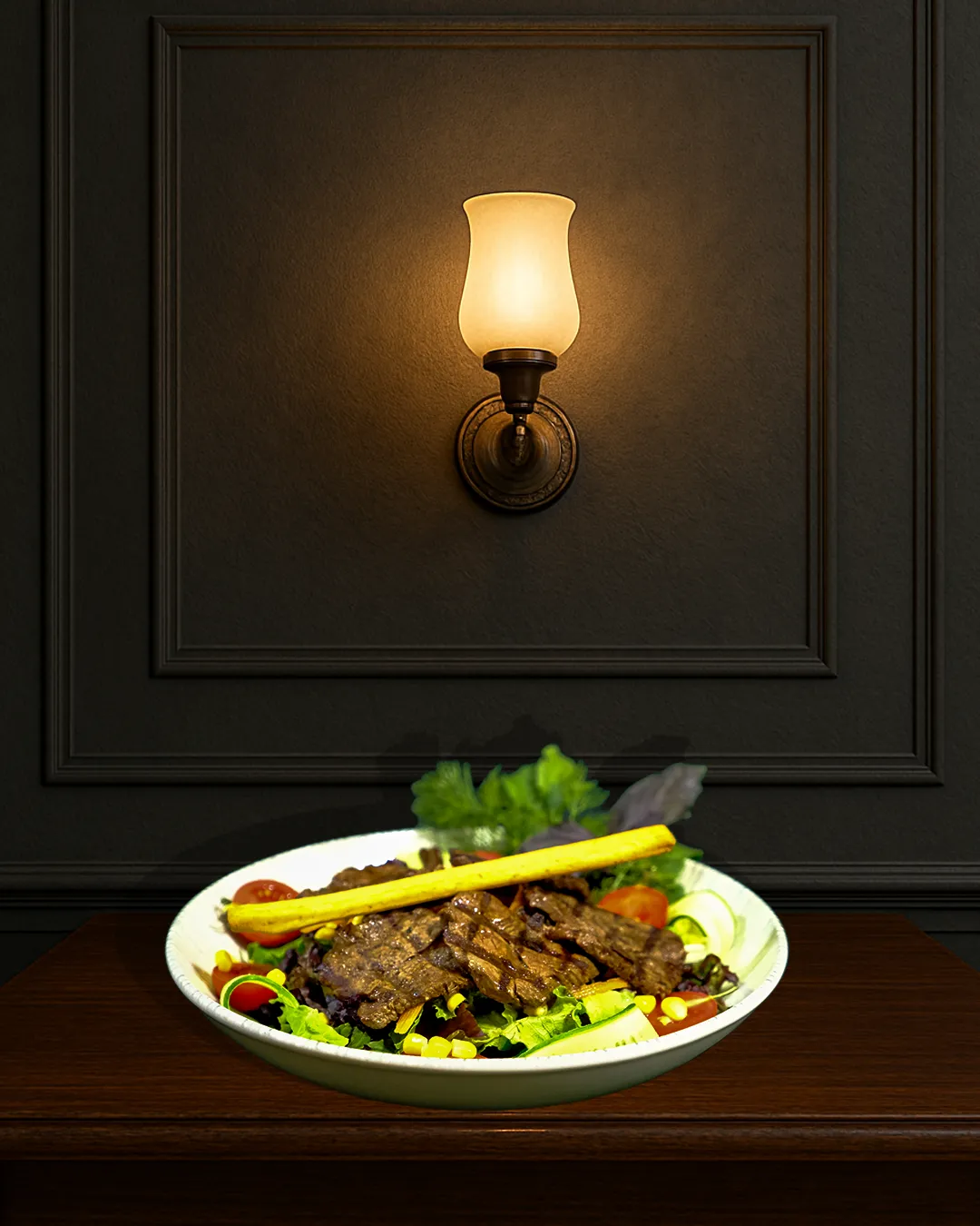 IZGARA DANA BONFİLE AKDENİZ YEŞİLLİK ÇERİ DOMATES SALATALIK MISIR